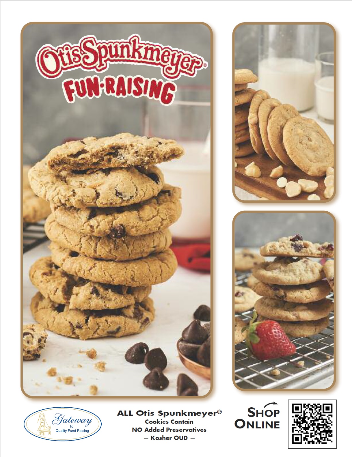 A Brochure featuring all of your favorite Otis Spunkmeyer cookies, Cinnamon Rolls, Pretzels, Harry & David and Pretzel bites